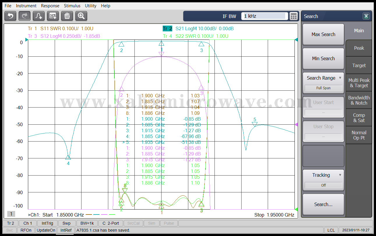 | ● | Pass Band Frequency | 1885 ~ 1915MHz | |