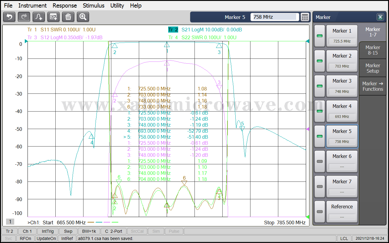 | ● | Stop Band Rejection | ≥40dB @ DC ~ 693MHz | ≥40dB @ 758 ~ 2000MHz |