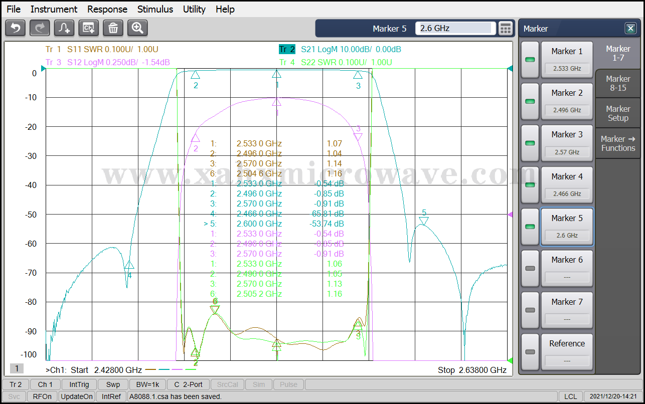| ● | Pass Band Frequency | 2496 ~ 2570MHz | |