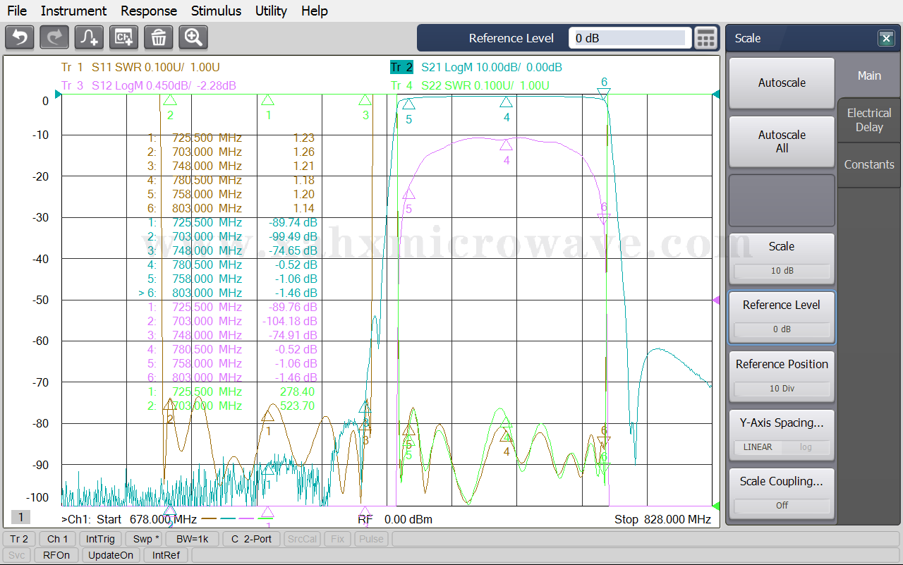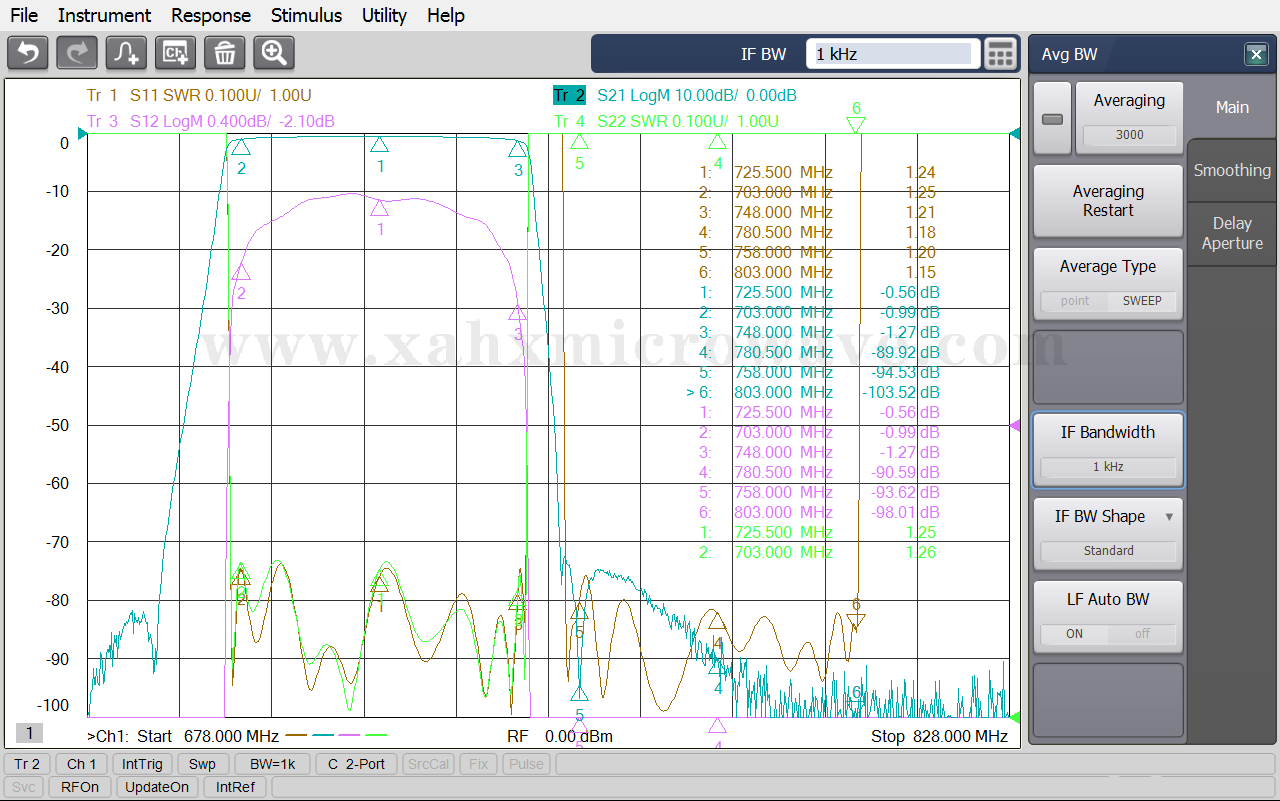 | ● | Pass Band Frequency | 703 ~ 748MHz | 758 ~ 803MHz |
