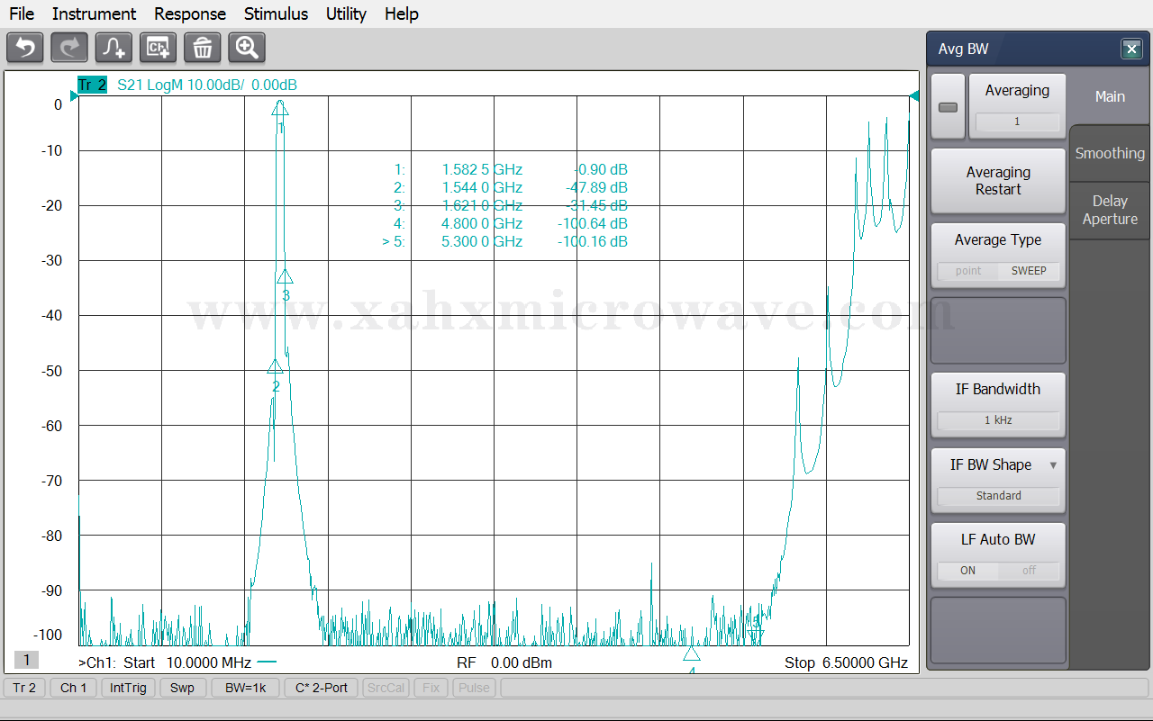 | ● | Stop Band Rejection | ≥30dB @ DC ~ 1544MHz | ≥30dB @ 1621 ~ 4800MHz |