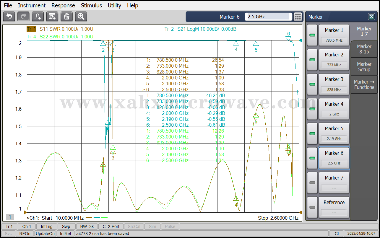 | ● | Stop Band Center Frequency | 780.5MHz |