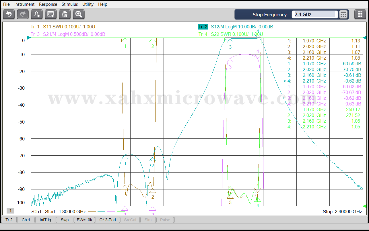 | ● | Stop Band Rejection | ≥60dB@2160~ 2210MHz | ≥60dB@1970~ 2020MHz |