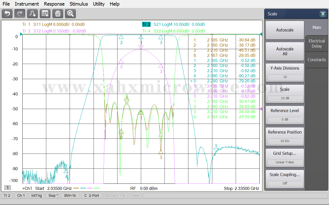| ● | Pass Band Frequency | 2160 ~ 2210MHz | |