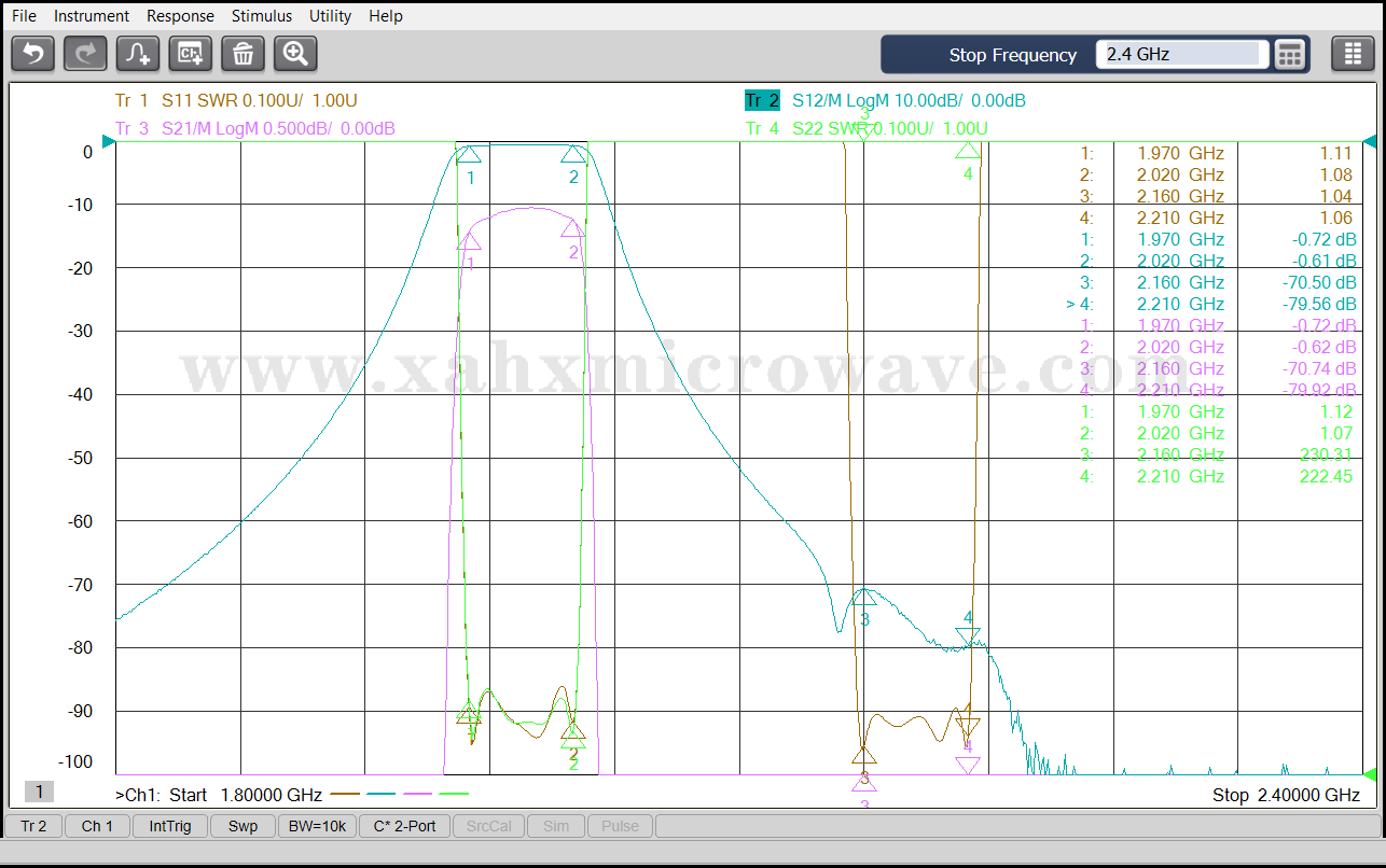 | ● | Stop Band Rejection | ≥60dB@2160~ 2210MHz | ≥60dB@1970~ 2020MHz |